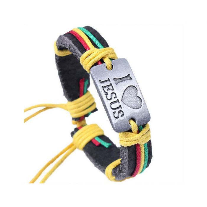 I love Jesus Bracelet Leather Urban Yellow