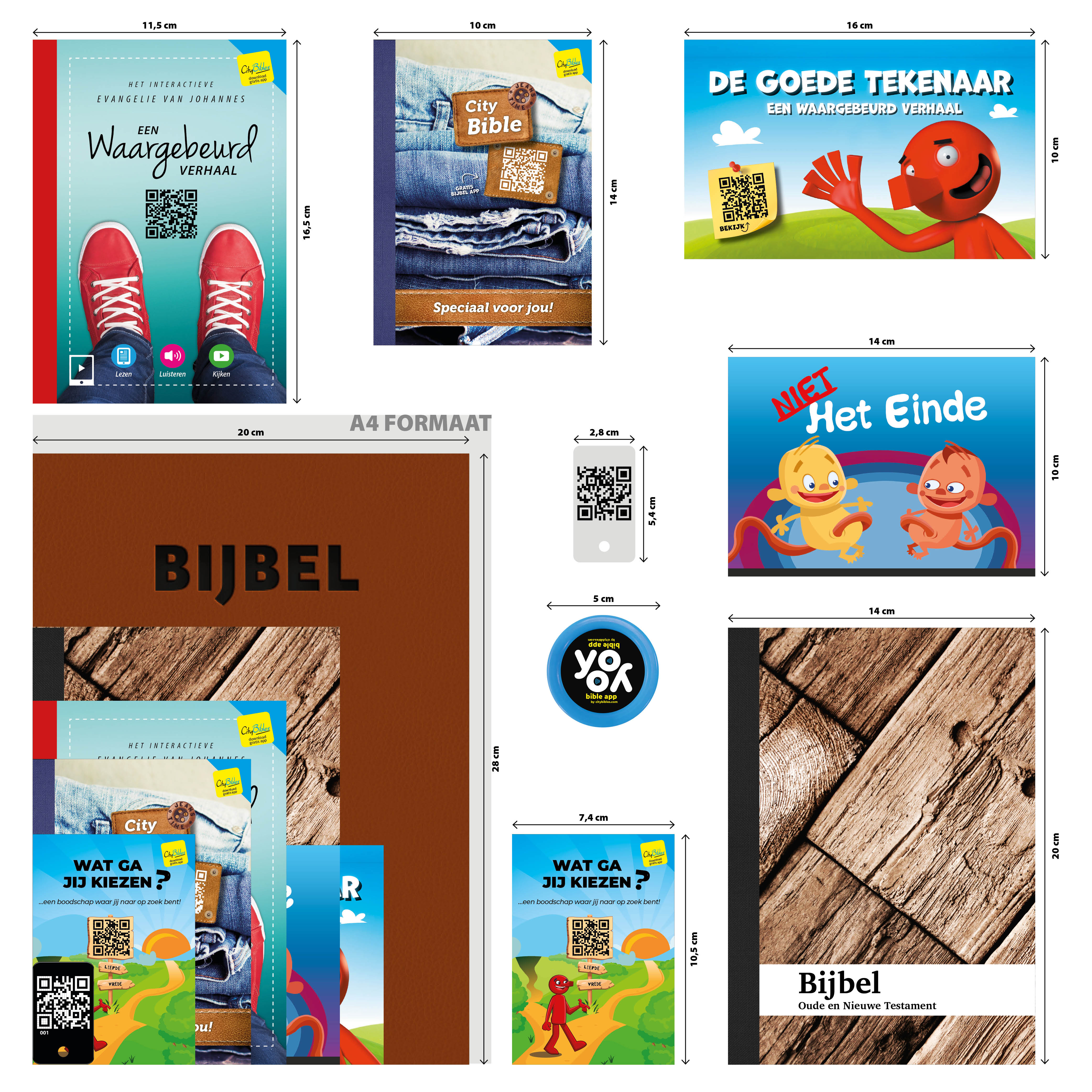 Hier kunt u een afbeelding zien met de afmetingen van de meeste product groepen.